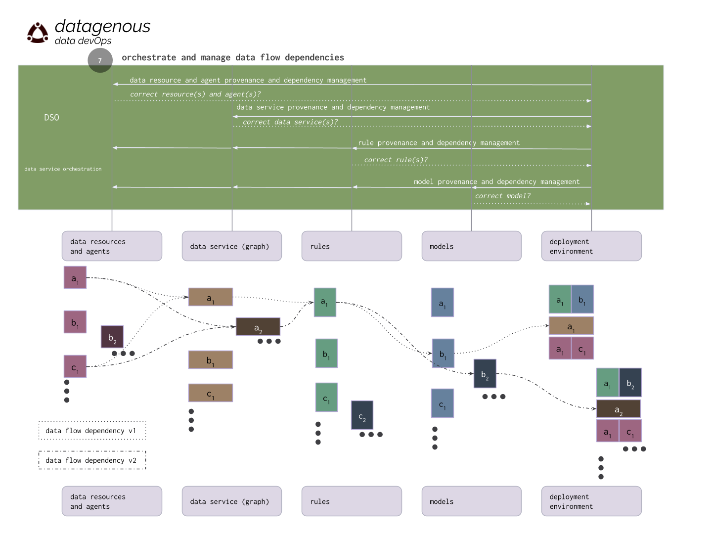 - datagenous orchestrates and manages data services and versions providing a coherent, repeatable framework that reduces the compeixity of managing evolving models.