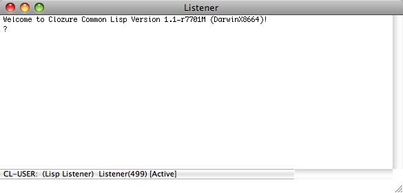 Double-click Clozure CL to launch it. Clozure CL displays a Listener window: